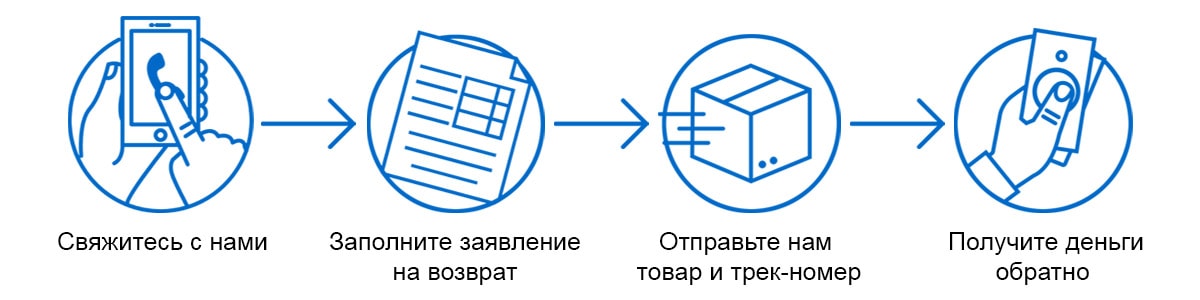 Заявление на возврат Вы можете скачать по следующей ссылке Заявление на возврат товара